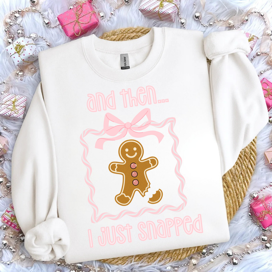 Funny Gingerbread Coquette Christmas Sweatshirt | “And Then I Just Snapped” | Gildan 18000 Crewneck Sweatshirt