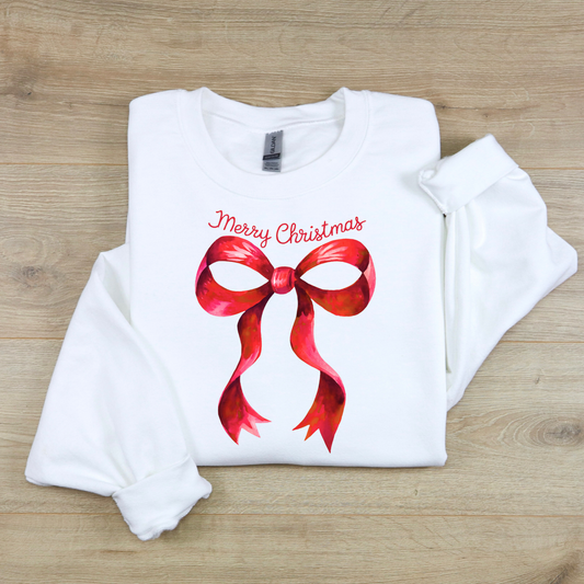 Merry & Bright | Christmas Tree Coquette Bow Christmas Crewneck Sweatshirt