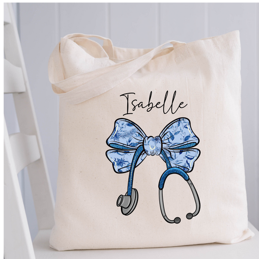 Personalized Nurse Stethoscope Bow Tote Bag