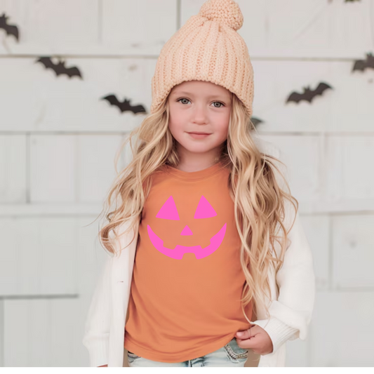 Pink Jack-o’-lantern Halloween Shirt for Kids - Comfort Colors