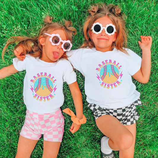 Ice Cream Drip Baseball Sister Shirt for Kids