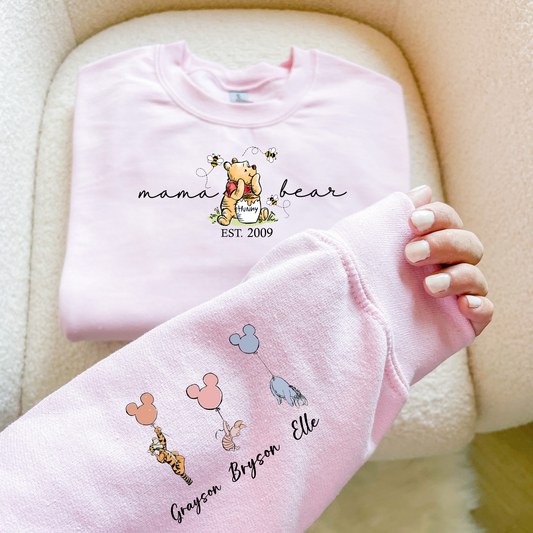 Mama Bear Sweatshirt with Kids Names on the Sleeve
