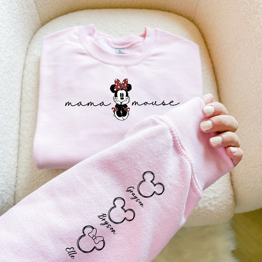 Mama Mouse Sweatshirt with Kids Names on the Sleeve