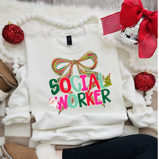 Christmas Social Worker Sweatshirt | Cozy Holiday Crewneck for Social Workers | Gildan 18000 Unisex Christmas Sweatshirt