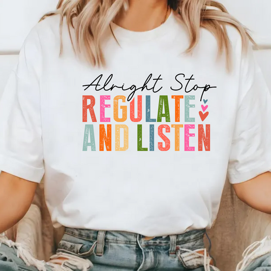 Alright Stop Regulate and Listen Shirt Comfort Colors - Teacher and Counselor Shirt