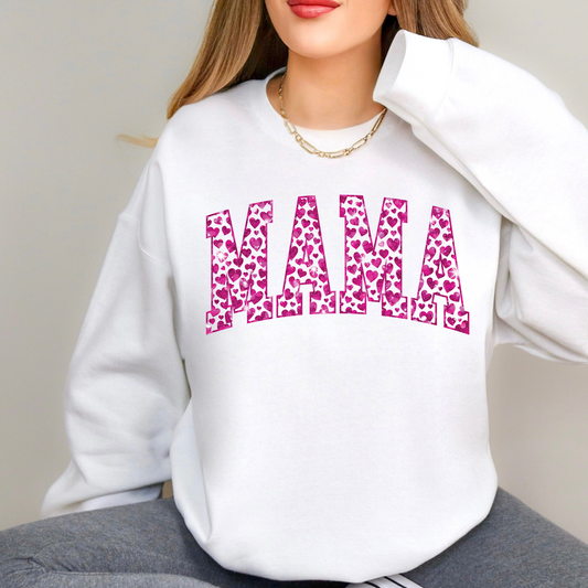 Valentine's Day Mama Pink Hearts Crewneck Sweatshirt