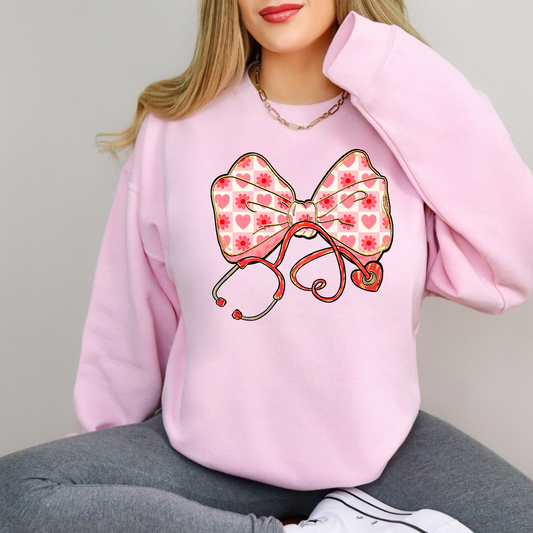 Valentine's Day Nurse Bow Stethoscope Sweatshirt