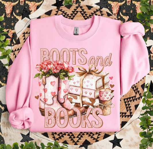 Boots & Books | Valentine's Day Crewneck Sweatshirt