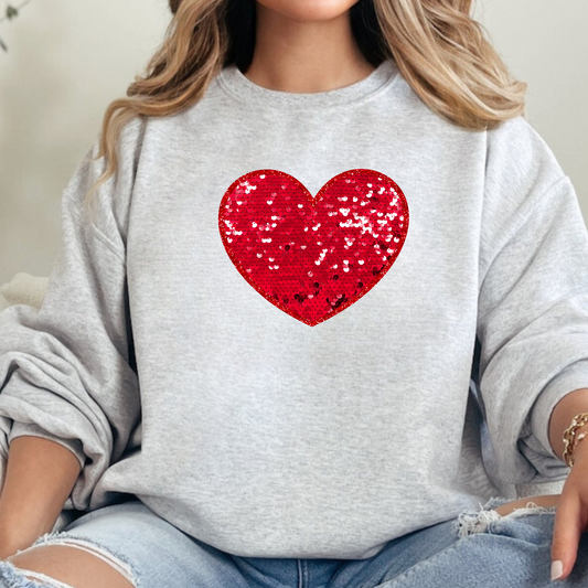 Faux Sequin Red Heart Valentine's Day Sweatshirt