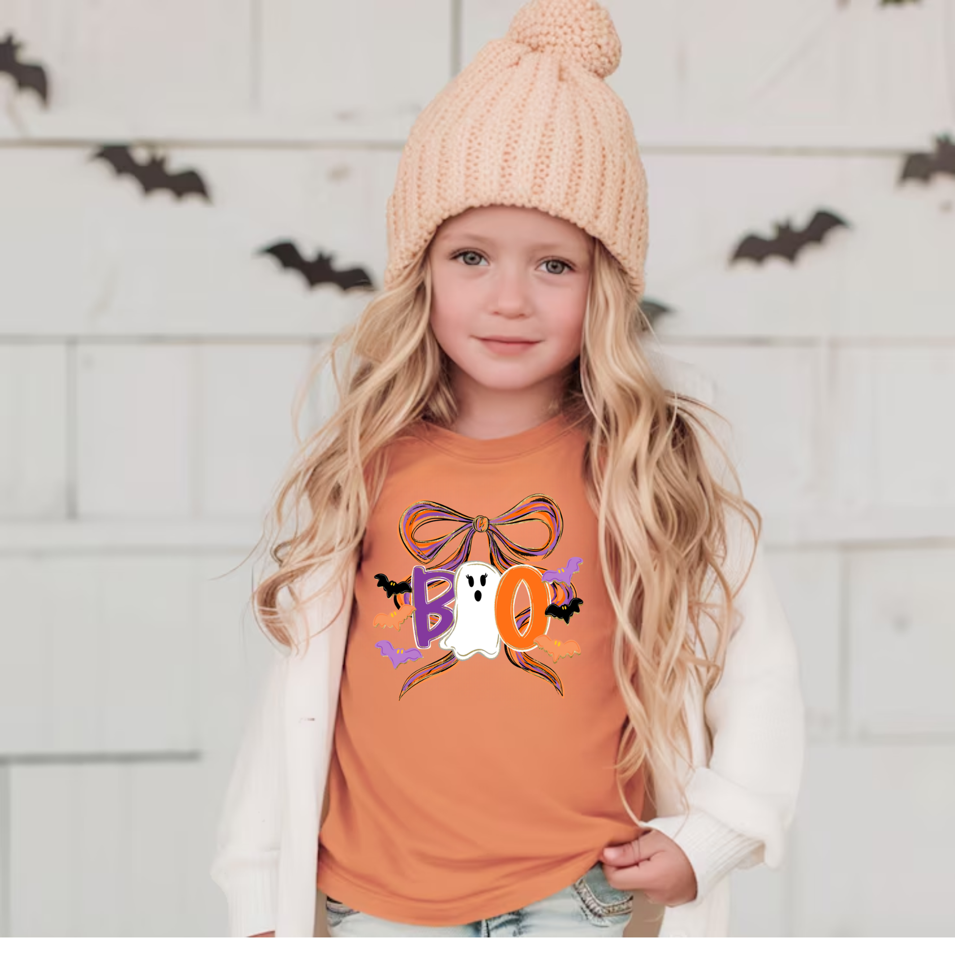 Our Coquette Halloween Ghost Bow Shirt is the perfect mix of sweet and spooky for your little ghoul. Featuring a cute white ghost with a pink coquette bow and the word βbooβ in playful script, this shirt is made for girls who love all things girly, pastel, and Halloween-aesthetic.