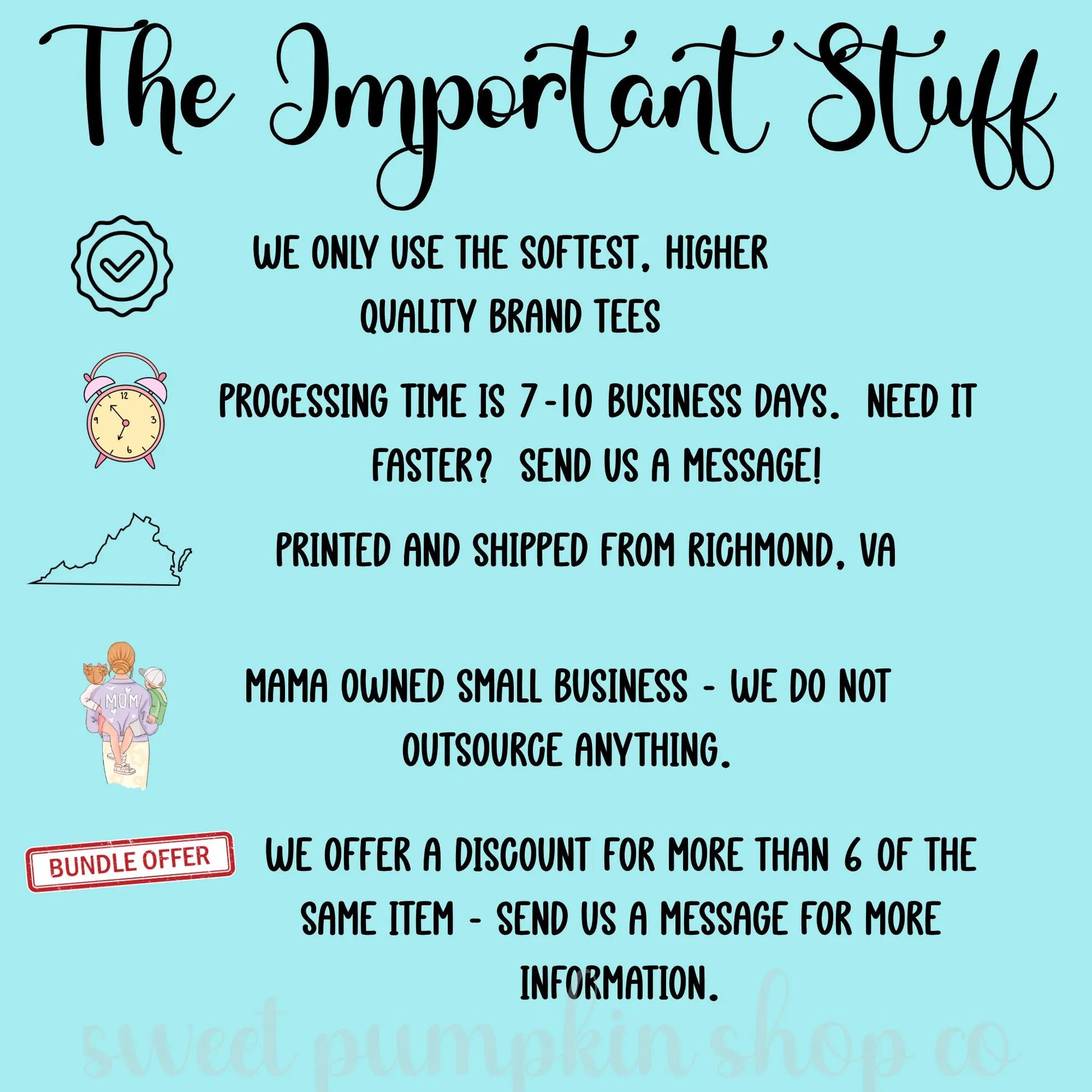 We’re so thankful you found our shop! We love creating shirts for groups, friends, families and holidays. Please reach out if you're looking for something specific that we don't offer.