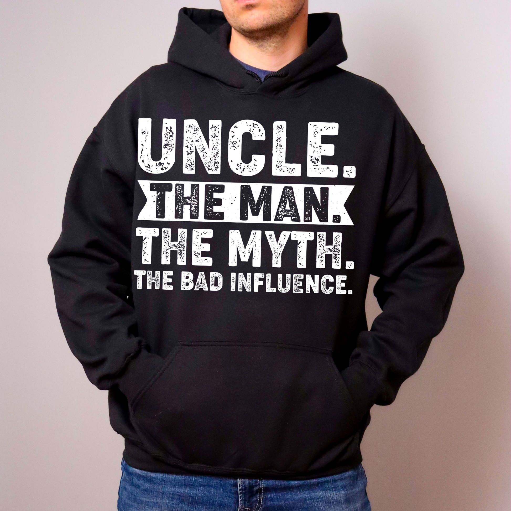 Uncle Hoodie – The Man, The Myth, The Bad Influence | Funny Uncle Sweatshirt Gift for Christmas, Birthdays