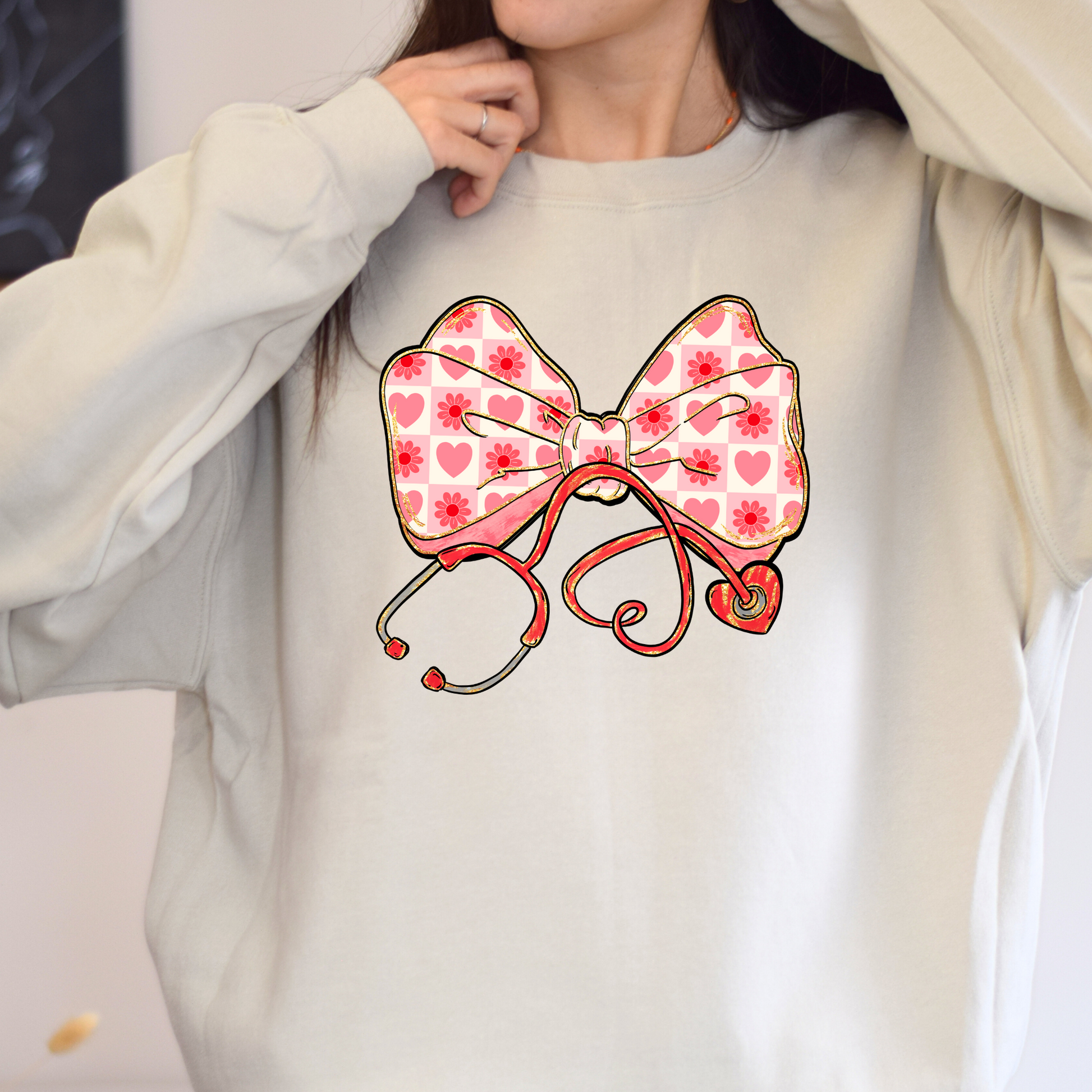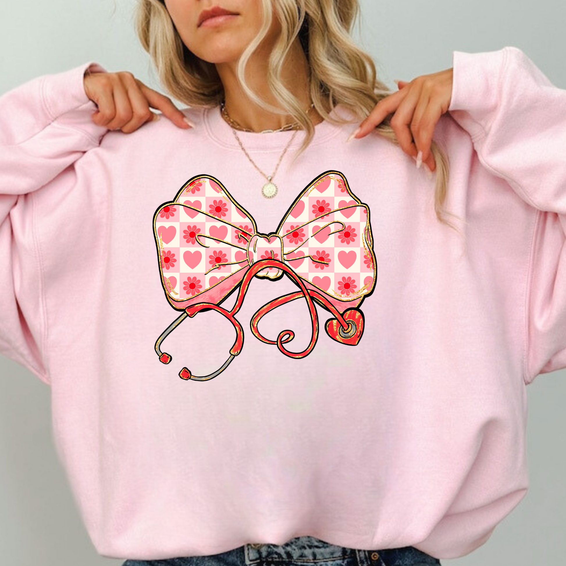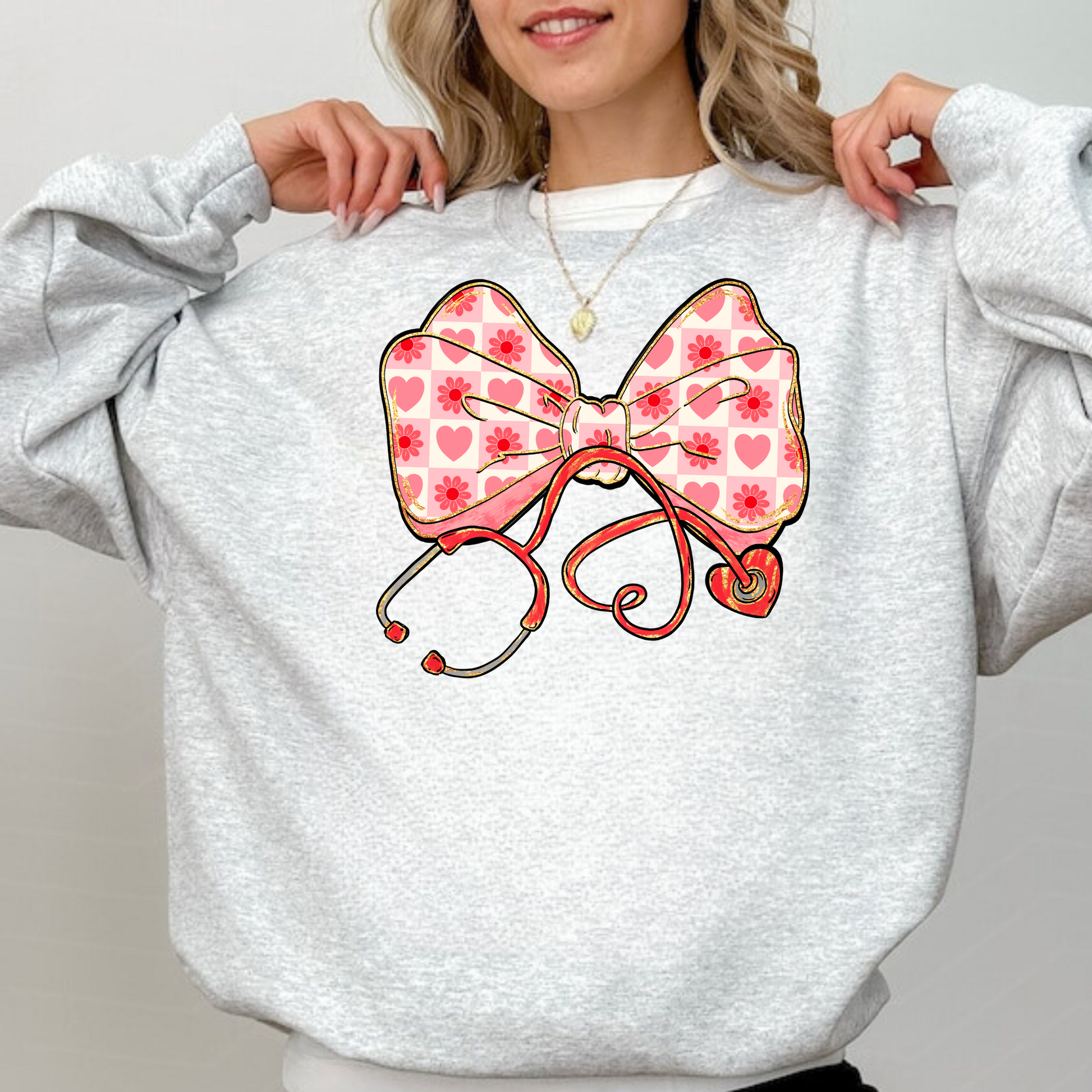 Valentine's Day Nurse Bow Stethoscope Sweatshirt
